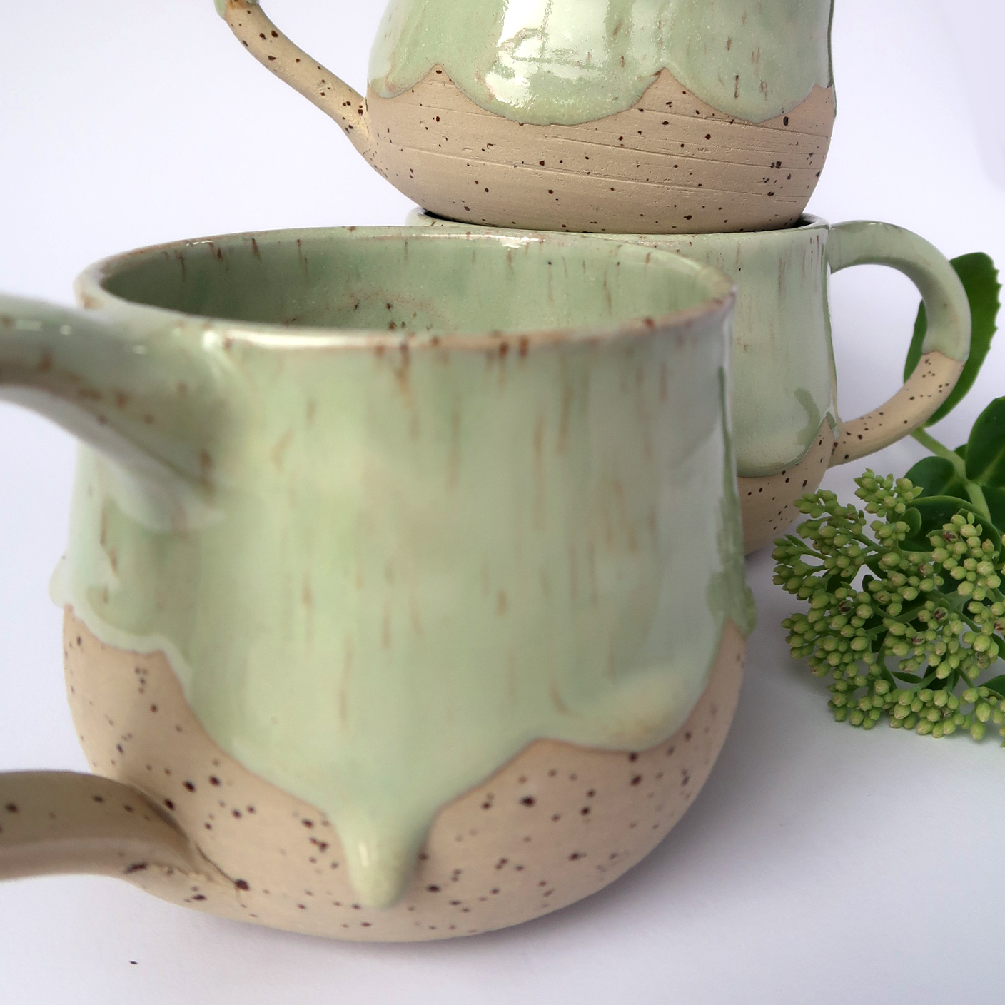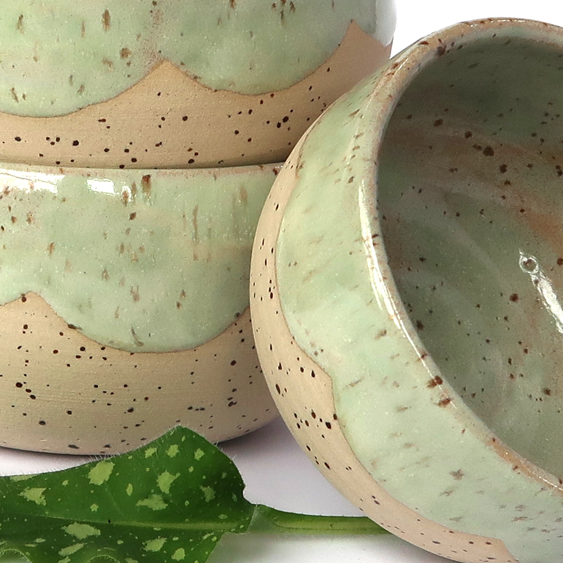 Glasur Pfefferminz – diese Glasur zeichnet sich durch ihr sanftes, grünliches Farbspiel aus. Im Zusammenspiel mit dem natürlichen Ton, strahlt sie Ruhe und Gelassenheit aus.
