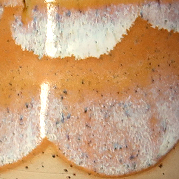 Glasur SiebenWelten – hier findet ein vielschichtiges Farbspiel statt: warme Orangetöne treffen auf lebendige Blautöne, die sich beim Brennen zu fließenden Übergängen verbinden.