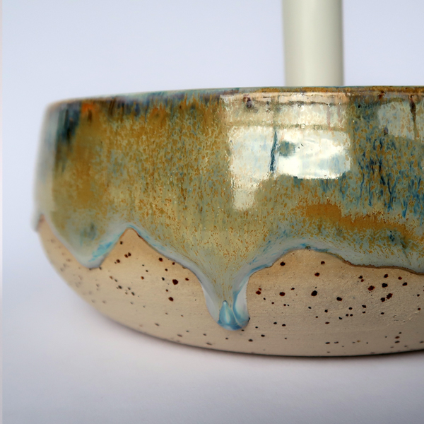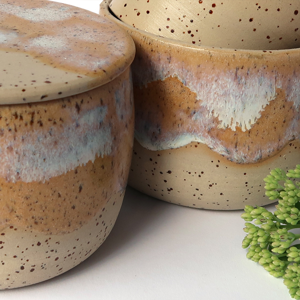 Glasur Wüste – Hier verbinden sich sandige Gelb- und Orangetöne mit hellen, leicht bläulichen Elementen. Die Glasur erinnert mich an den Duft nach Regen an warmen Sommertagen.